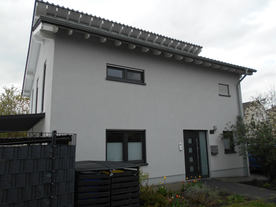 Durch einen Generalunternehmer wurde im Jahr 2018 ein freistehendes Einfamilienhaus mit zwei Vollgeschossen und versetzten Pultdächern errichtet.